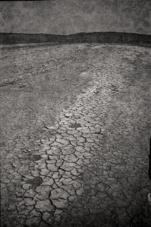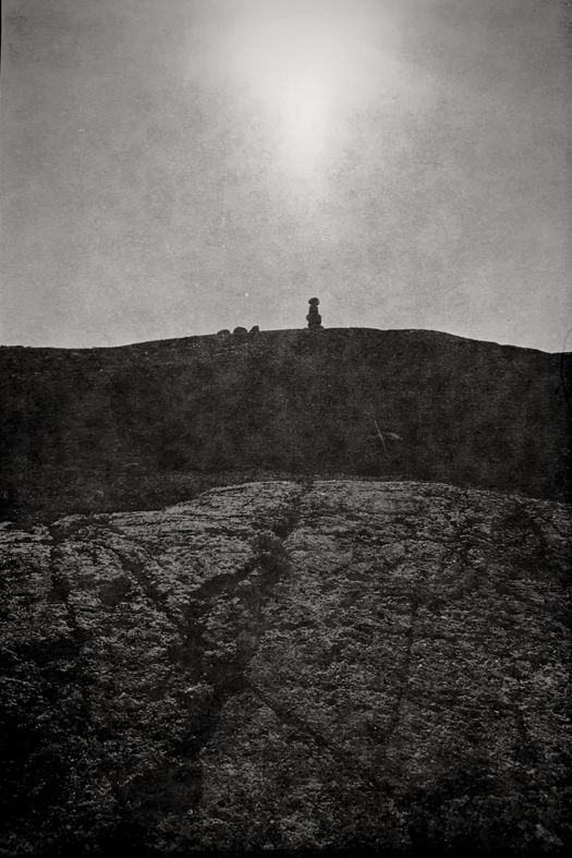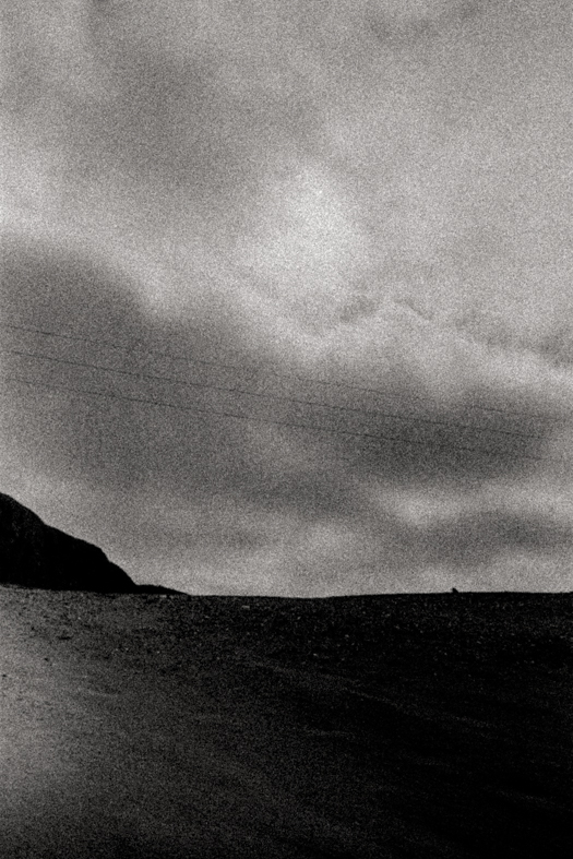 Three layers: the surface, the sky and in the middle is another encountered object, an artefact of civilisation. These objects highlight the boundary.